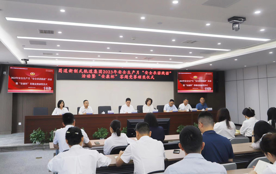 6月12日,為充實(shí)開(kāi)展2023年“安全生產(chǎn)月”相關(guān)主題活動(dòng),堅(jiān)持樹(shù)牢企業(yè)主要負(fù)責(zé)人及全體職工安全紅線意識(shí),蜀道新制式軌道集團(tuán)舉行“安全承諾踐諾”活動(dòng)暨“安康杯”答題競(jìng)賽頒獎(jiǎng)儀式。會(huì)上,參會(huì)人員集中觀看了《生命之鑒—全省生產(chǎn)安全事故警示教育片》,黨委書(shū)記、董事長(zhǎng)韓瑀萱進(jìn)行了“安全承諾踐諾”宣誓,所有參會(huì)職工進(jìn)行安全責(zé)任集體宣誓,并為蜀道新制式軌道集團(tuán)“安康杯”線上答題獲獎(jiǎng)人員進(jìn)行了頒獎(jiǎng)。